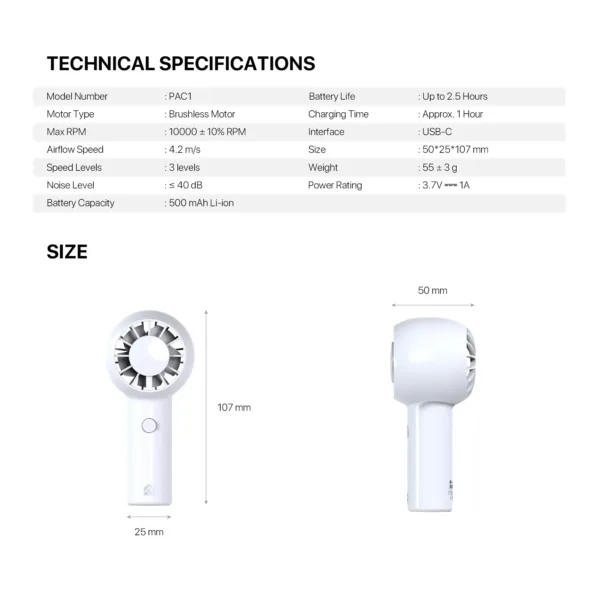 Fantech Life Portable Cooler PAC2 ? Mini Handheld Fan, Powerful Airflow, 120-Speed Adjustment, LCD Display